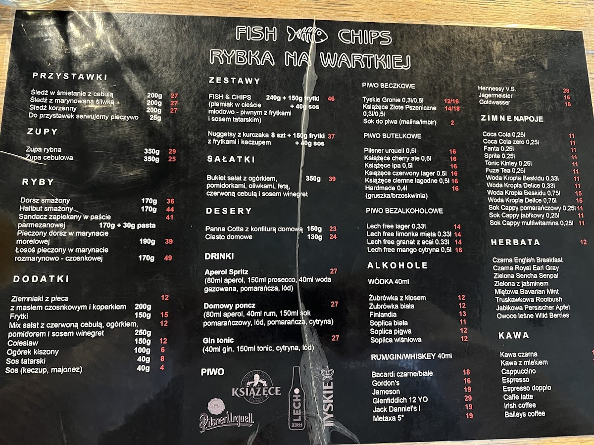 Introducing the Menu at Restauracja Rybka na Wartkiej